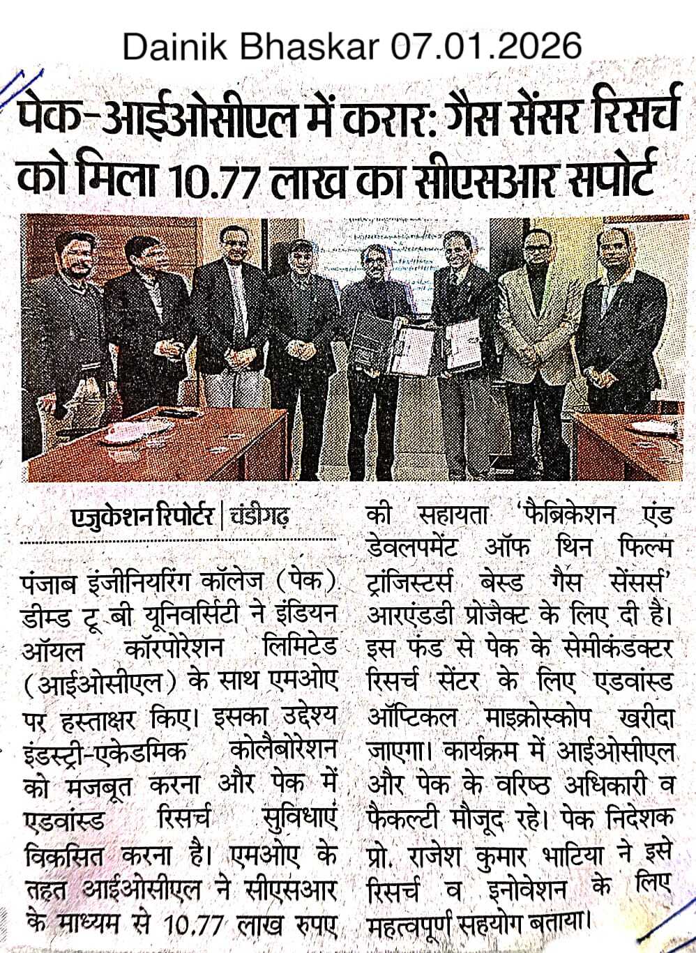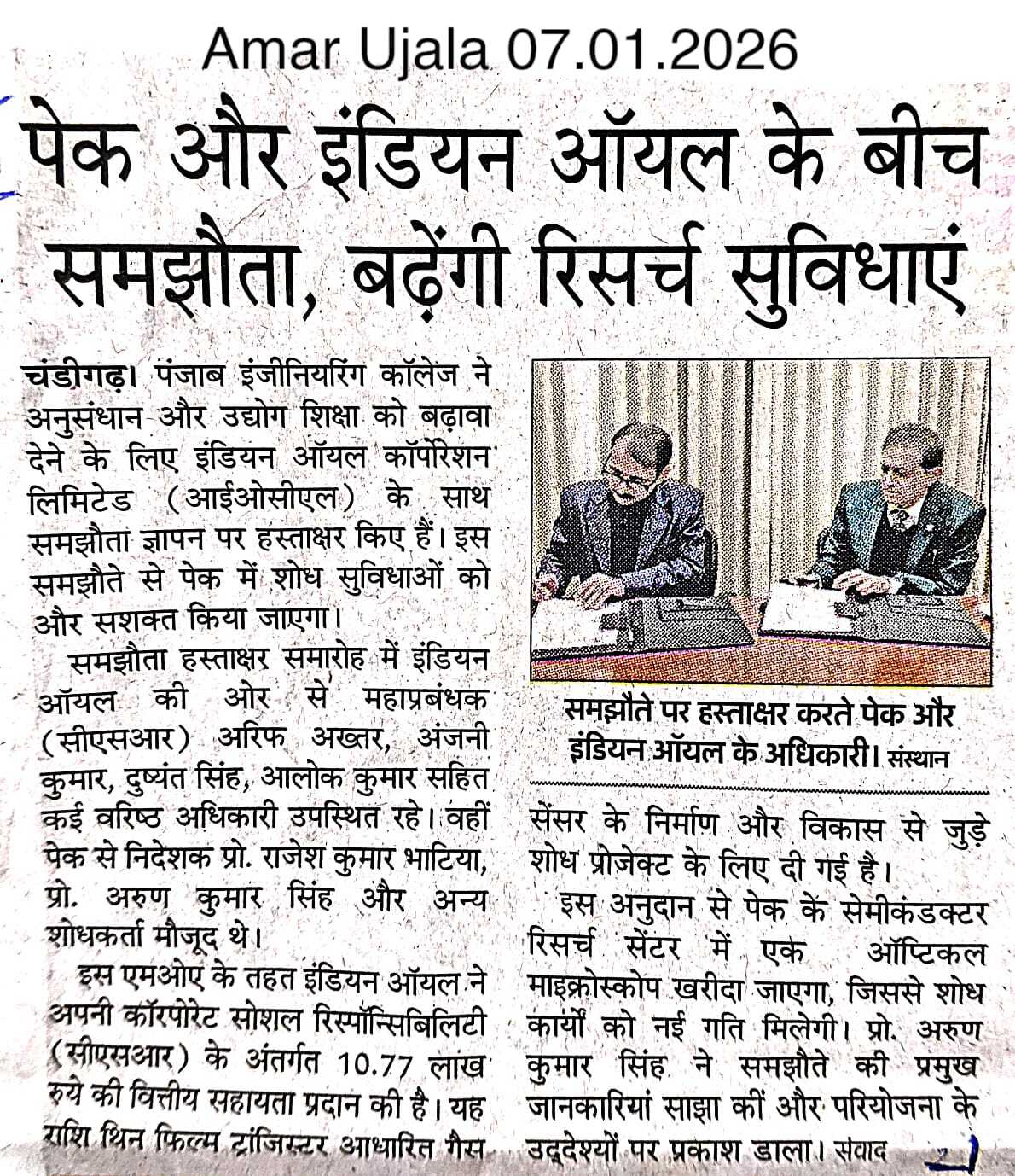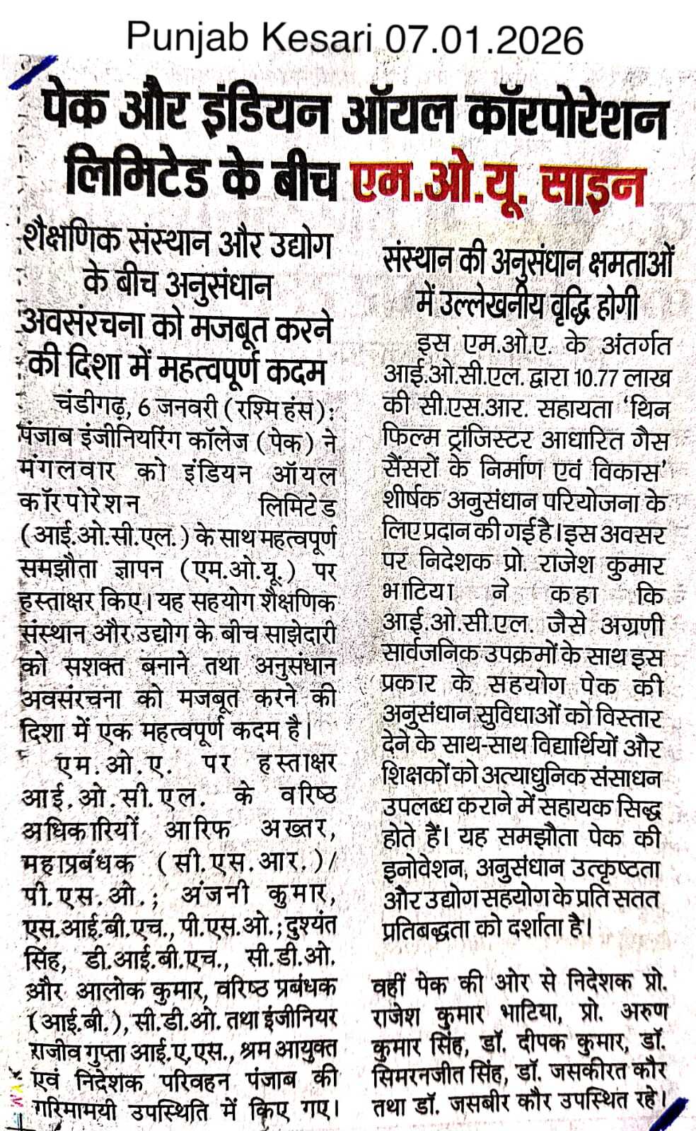 PEC Signs MoA with Indian Oil Corporation Limited to Strengthen Research Infrastructure |