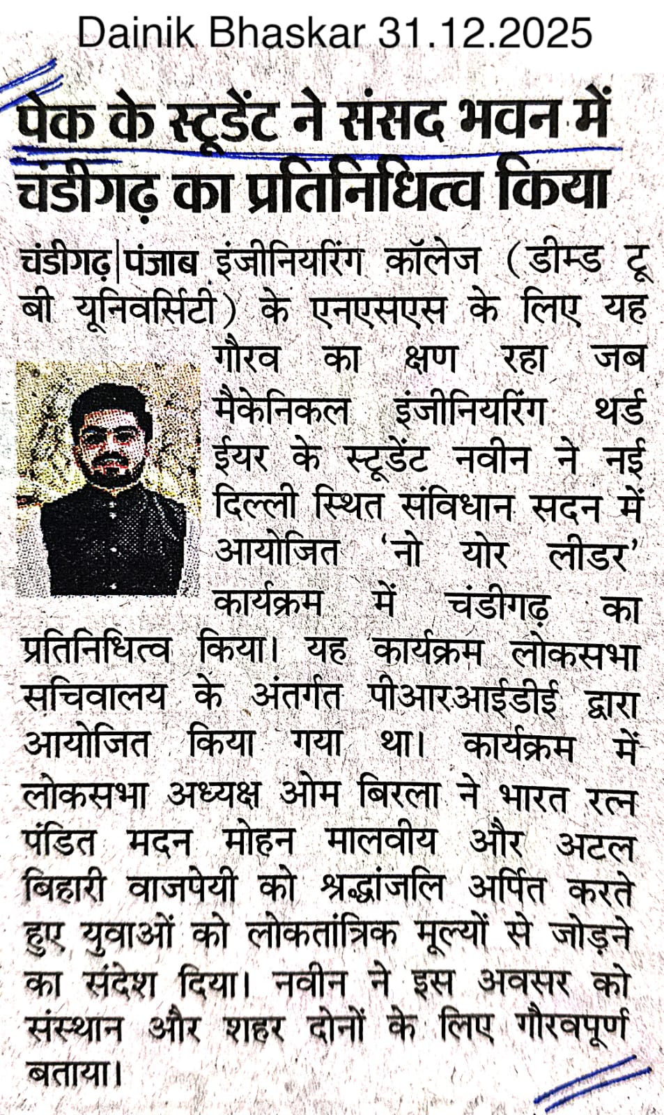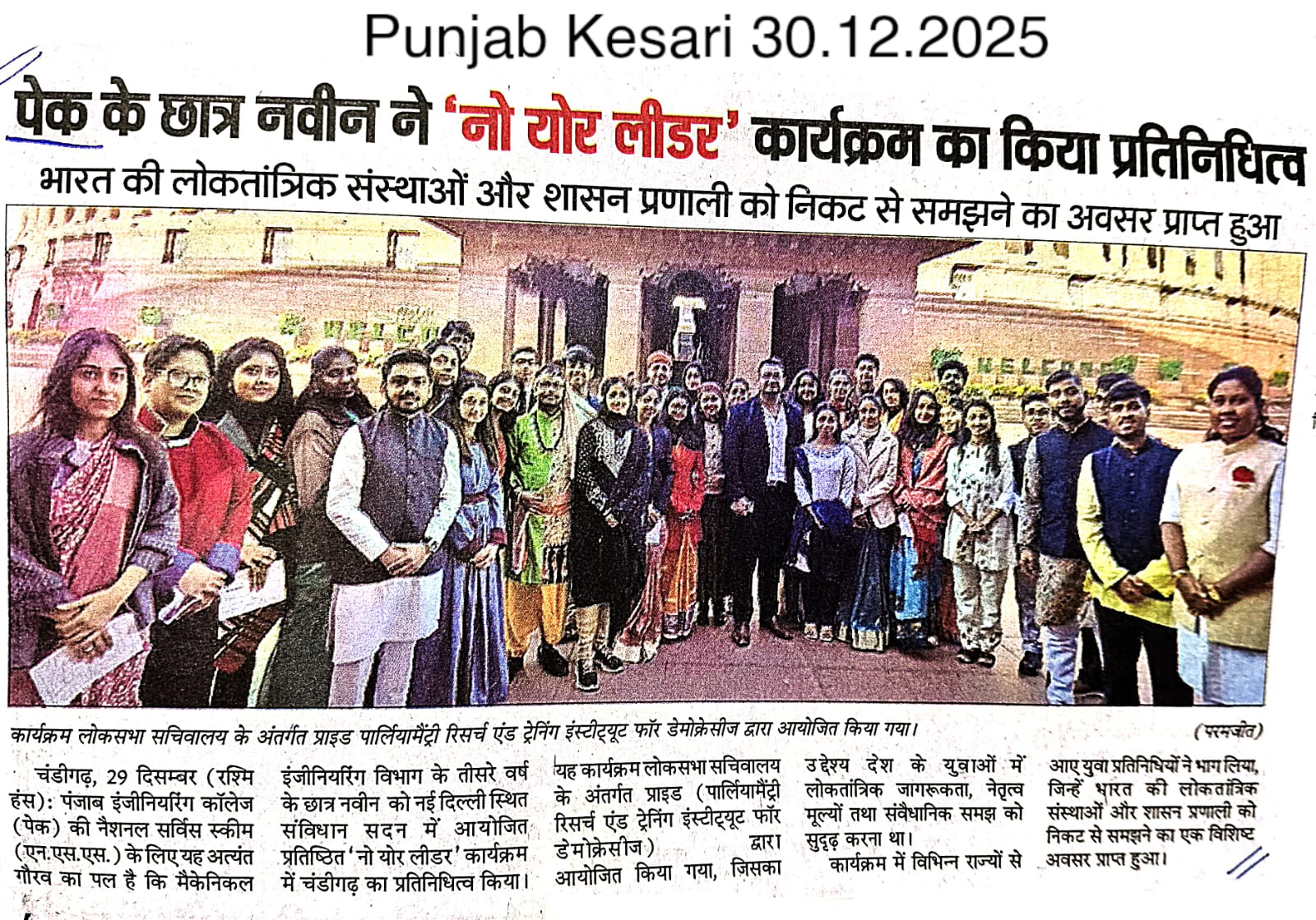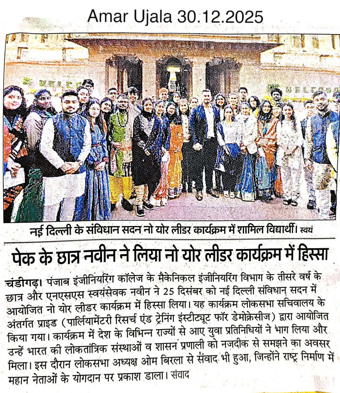 PEC Student at "Know Your Leader" Program at Samvidhan Sadan, New Delhi |