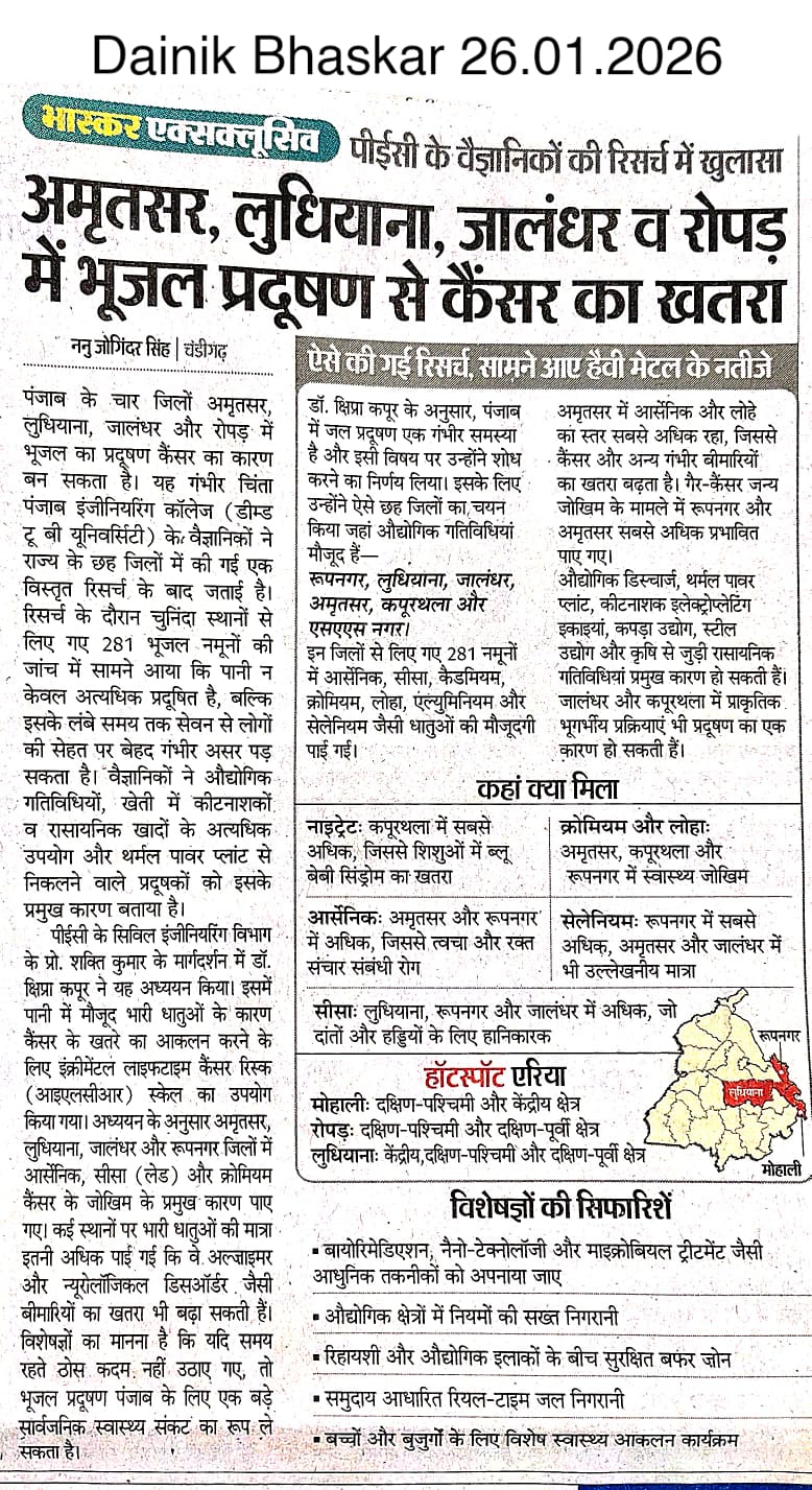 PEC Scientists conducted research on Ground Water Cancer |