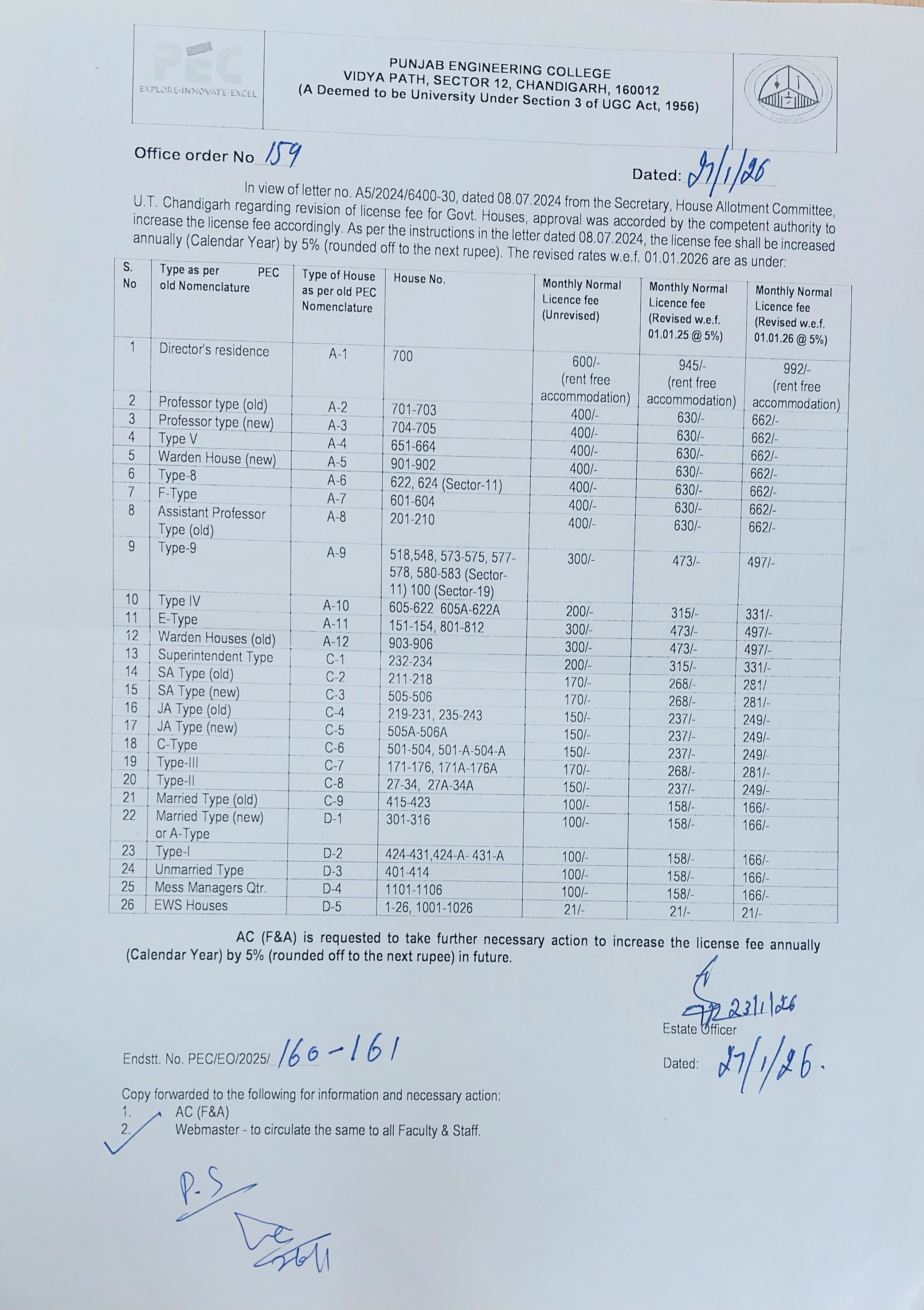| 1 | Institute | Notice Regarding Revision of License Fee for PEC Residential Houses w.e.f. 01.01.2026 |